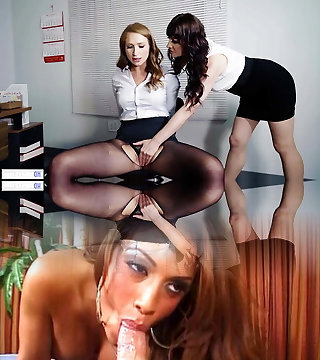 Sexy girl in pantyhose and high heels has lesbian sex at a casting