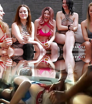 Bisexual Squirt Queen Roxy Rideher and friend Lila-Rose have a no condom gang-fuck party with 5 lucky guys