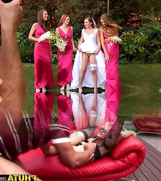 Blinded by the Anal Fucksluts 3 sexy brunettes take it in turns to take it up the ass during a party lovemaking sesh