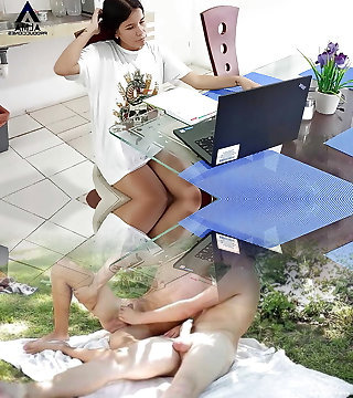 خواهرخوانده من با دوست دخترش تماس ویدیویی داره پس من به اون ملحق میشم و ما با هم سکس میکنیم تا دوست دخترش بتونه ما رو تماشا کنه